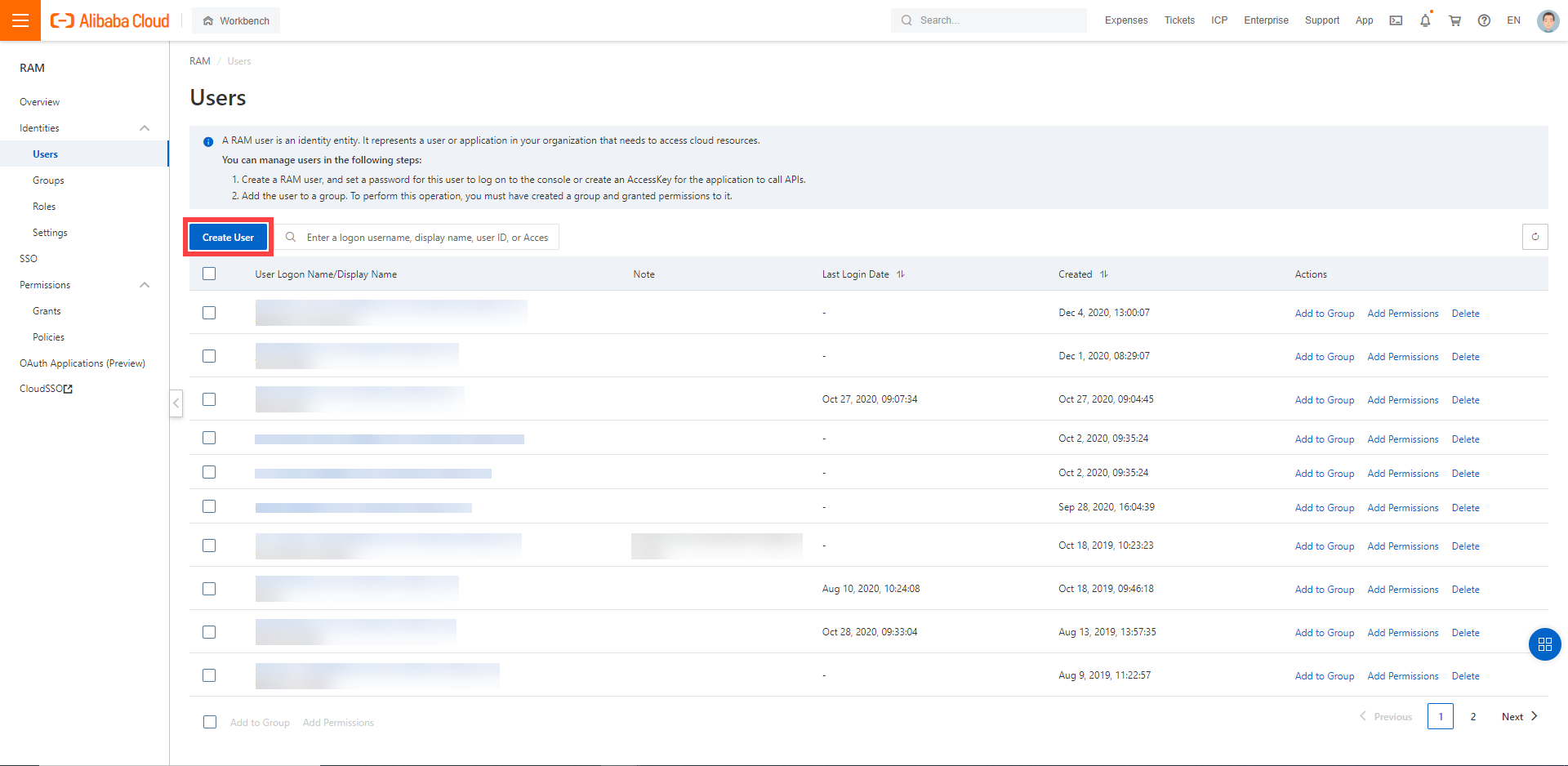 Log on to your Alibaba account and choose RAM > Permissions > Policies.
