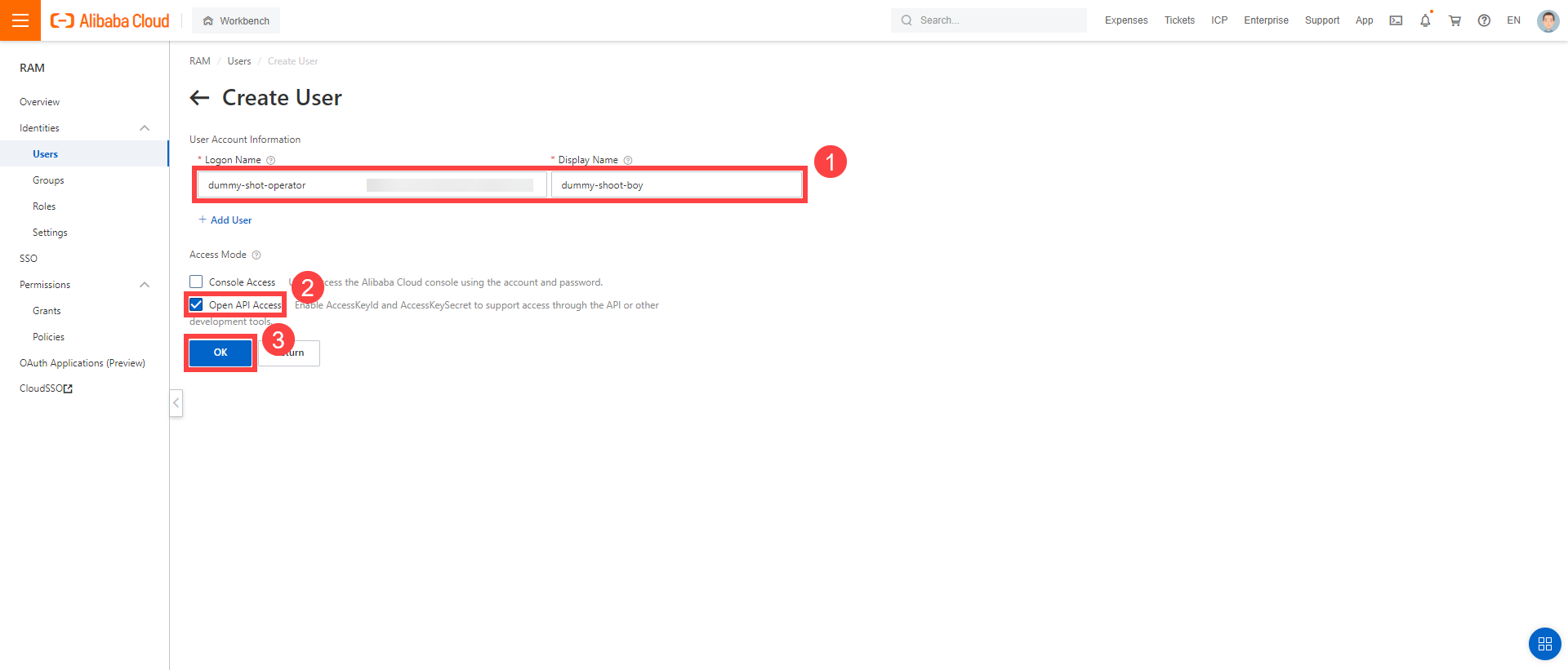 To be able to add shoot clusters to this project, you must first create a technical user on Alibaba Cloud with sufficient permissions.